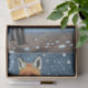 Un divertido y lindo personaje de un libro de cuentos, Fox, en una noche de inviernos estrellados.