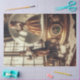 Como parte de una fantástica obra de arte steampunk, estos dos artistas son parte de un elegante globo de nieve victoriano. Con el cantante dentro del mundo y el guitarrista afuera, ambos están listos para actuar en este mundo caprichoso. Este papel de tejido es perfecto para artesanías como la desconexión.