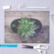Suculentas macetas floridas estilo rústico estilo pintado de arte verde artesanía de papel de tejido de desconchado. Hermoso envoltorio de regalo de diseño de madera botánica. Derechos de imagen de Marg Seregelyi Photography.