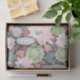 Cactus y plantas suculentas en tonos verdes, rosa y azul sobre un fondo marrón oscuro | Papel de tejidos de Jenn's Emporium. Me encantan los cactus y los suculentos y su popularidad se extiende más allá de Arizona. También son muy fáciles de crecer. ¡Este patrón está disponible en una variedad de productos!