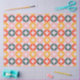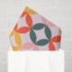 The tissue paper features a large-scale, mid-century modern geometric pattern consisting of overlapping circles that form rounded diamond shapes in the center. The design uses a coordinated mix of muted coral, sunny mustard yellow, and sage green set against a soft lavender or pale pink background. Perfect for birthdays, holidays, or everyday gifting, this design adds a joyful pop of color to any present—no extra embellishments needed.
