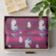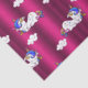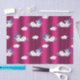 Papel de tejido de unicornio rosa bonito, con un patrón de adorables unicornios arcoiris, durmiendo bajo grandes nubes blancas hinchadas sobre un fondo rosa brillante.