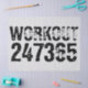 Texto desgastado y raspado Workout 247365 en color negro con fondo blanco. Perfecto para todo aquel que levante, haga ejercicio físico, entrenando, construyendo el cuerpo e ir al gimnasio.