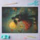Step into a whimsical world where love meets the surreal. This enchanting decoupage paper features a couple locked in an intimate embrace beneath a glowing moon, surrounded by floating objects—a rocking horse, vintage chairs, ribbons, butterflies, and a teacup. His form dissolves into the night while her red dress flutters like fire. Perfect for dreamy mixed media, altered books, romantic crafts, or magical storytelling projects.