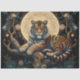 Envuelva sus regalos o cree manualidades de decoupage únicas con este papel de seda de tigre inspirado en bohemio. Este papel de seda de acuarela creado digitalmente presenta a un tigre de espíritu libre ubicado en un árbol místico, completo con florituras caprichosas. Una luna lunar adorna el fondo. Esta obra de arte de IA fue creada por Susang6.