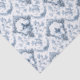 Elegante estampado clásico de toile floral azul y blanco grabado con viñetas de molino de viento y velero en medallones rococó ornamentados con guirnaldas de rosas y viñas giratorias. El patrón no tiene fisuras y puede ampliarse o reducirse.
