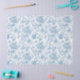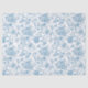 Elevate your gift wrapping with our new tissue paper design featuring an elegant Toile-de-Jouy Chinoiseries blue floral pattern, against a custom white background.