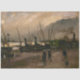 Los últimos miembros del crepúsculo se aferran al cielo de Ámsterdam, sangrando un naranja feroz y rosa flamingo a través del lienzo de nubes. Aquí, en el De Ruijterkade, el bullicioso puerto de la ciudad, se desarrolló una sinfonía de la industria silenciosa. El rítmico grito de manipulación, los gritos silenciosos de los marineros, el suave regazo del agua contra los muelles de madera - todas melodías en este concierto nocturno. — Yo, Vincent van Gogh, me paré aquí, mis pinceladas imitando la danza de la luz y la sombra en el agua. Las siluetas de los barcos, algunos con chimeneas que proclamaban su era moderna, se balanceaban como gigantes fangosos. En los adoquines, las figuras se movían con un fin cansado; tal vez los pescadores, sus rostros cubiertos con las líneas de una vida que se pasaba luchando contra el mar, o los obreros, enanos por los enormes cascos, su trabajo era un ballet silencioso en la luz que se desvanecía. — Aquí hay un silencio, una pausa embarazada entre el exhalo de un día y la inhalación de la siguiente. ¿Es este el fin de un viaje, o el comienzo vacilante de uno nuevo? La respuesta crece sin ser vista en la superficie del agua. Lo capturo todo con vibrantes trazos de color, el blues y los naranjas como contrapunto a la desvanecida sinfonía de la ciudad. En esta escena, mil historias esperan ser contadas; los cuentos susurrados por el viento, los secretos guardados en los oscuros cascos, las vidas grabadas en las caras de los no vistos. El De Ruijterkade, un puerto que respira, una ciudad que se desmorona, una historia a la espera de ser pintada. — Este trabajo de Vincent van Gogh es de dominio público en su país de origen y en otros países y áreas donde el plazo de derechos de autor es la vida del autor más 100 años o menos.