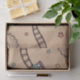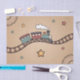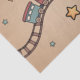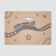 Papel higiénico con el ilustracion de un tren de madera sonriente que recorre una pista sinuosa. El fondo es un beige cálido y degradado, con detalles sutiles como los engranajes de madera y las estrellas dibujadas a mano. ¡Una encantadora opción para envolver un regalo a un niño!