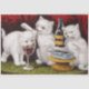 Este diseño incluye un ilustracion de Currier e Ives. En él se representan tres gatitos blancos sobre una mesa. Uno de los gatitos es beber de una copa de vino del puerto. El otro gatito ha abierto una lata de sardinas y se está comiendo alegremente un pescado. El gatito en el medio parece estar celoso del gatito que bebe el vino y actúa agresivamente. Es una linda imagen de mascotas gatos disfrutando de un fiesta arrojado por sus dueños. La obra original se terminó en 1871.
