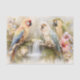 Elegant tropical parrots illustration featuring vibrant exotic birds, lush botanical details and a serene waterfall backdrop.