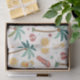 Bright tropical pattern tissue paper featuring palm trees, surfboards, citrus slices, flip flops, and fruity drinks in a fun summer-inspired style. Ideal for beach lovers, surfers, vacation fans, and anyone who loves colorful tropical aesthetics.