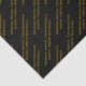 Este diseño único presenta texto negro impreso en filas diagonales de desplazamiento sobre un fondo negro. Este diseño de texto en negro y oro utiliza sólo el texto repetido en un patrón diagonal para crear una impresión completa. Tiene espacio para un mensaje corto con hasta tres líneas. El mensaje puede ser para varias ocasiones, como por ejemplo "sólo porque", cumpleaños (para todas las edades, incluso sobre la colina), graduaciones, aniversarios, vacaciones, o para todas las ocasiones, personales o de negocios, donde se quiere compartir un regalo especial de sake con el mensaje impreso en él. Para personalizar fácilmente el texto en el patrón, utilice la plantilla proporcionada.