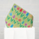 Los tulipanes de la primavera adornados con los lunares caprichosos, rayas y remolinos, en sombras de rojo, azul, del naranja y de la púrpura en un fondo verde, hacen esto un papel seda de la diversión para cualquier ocasión.