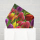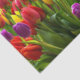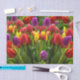 Este bonito diseño presenta una imagen de alta definición de tulipanes en varios tonos vivos de rojo, violeta y amarillo. Originalmente, los tulipanes se volvieron salvajes en Asia Central y fueron vistos como un símbolo del Imperio Otomano, sin embargo, en el siglo XVI fueron importados a Europa y pronto se volvieron altamente valorados como una mercancía valiosa. Se asociaron con los Países Bajos, donde se cultivaron muchas flores y se comercializaron en los mercados. Desde entonces se han criado muchos híbridos y cultivares hermosos, en todo tipo de colores maravillosos.