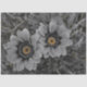 A pair of delicate daisies take centre stage in this striking selective‑colour photograph. The petals and surrounding foliage are rendered in smooth grayscale, creating a calm, monochrome backdrop. At the heart of each bloom, vivid yellow‑orange centres burst with warmth and detail, forming a dramatic contrast that immediately draws the eye. Fine water droplets rest on the petals and leaves, adding texture and a sense of freshness. The combination of soft tones and vibrant colour accents gives the artwork a modern, elegant feel that suits home décor, nature lovers, and contemporary art collections.