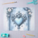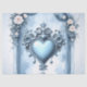 Una arcada azul claro ornamentada con acentos florales, un emblema cardíaco y rosas. Descubra una elegante arcada con dos columnas con una parte abovedada, adornada con intrincadas tallaciones y un emblema central en forma de corazón. Las rosas blancas con matices de melocotón, hojas delicadas y pequeñas flores blancas enmarcan el portal de diseño sorprendente. Ideal para presentaciones de empresa o producto, bodas o diseños de eventos que combinan el romance clásico con esquemas de color modernos.