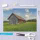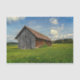 Papel De Seda Un pequeño granero gris y marrón en un campo de fl