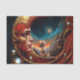Papel De Seda Un pequeño hada sentada en una luna roja dorada.