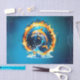 Una fascinante interacción de fuego y agua. Un delfín salta elegantemente en medio de este impresionante contraste de fuego y agua. Su piel plateada brilla a la luz de las llamas y el agua.