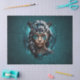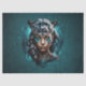 Una fascinante mujer de fantasía cuya cara está pintada de manera abstracta, exudando un aura mística. Una cabeza de leopardo negro se sienta sobre su cabeza, cuya intensa mirada transmite fuerza y fauna. La fusión de humanos y animales en este diseño encarna la dualidad de la naturaleza y la conexión entre los humanos y el reino animal.