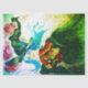 Pintura acrílica de una bruja afuera preparándose para una noche espeluznante en toda la víspera de los Hallowares.