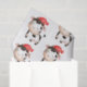 Papel de tejidos con una adorable imagen de una vaca manchada de blanco y negro con un gorra rojo.
