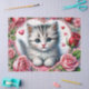 This Valentine's Day themed tissue paper features a watercolor painting of a cute kitten surrounded by pink and red roses (and other pink flowers and hearts!). The blue-eyed kitty has a gray tabby-like coat and is framed by a larger heart.