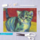 Papel de tejidos con un gato en forma de tabby al estilo de Van Gogh! Este gatito dulce se posa adorablemente sobre un parqué de madera contra paredes rojas y una ventana. ¡Un regalo increíble para los amantes del gato y para los coleccionistas holandeses de arte!