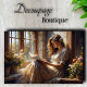 Embelligue su mobiliario con este cautivador papel de tejido desconchado que presenta una serena escena de contemplación tranquila. Una joven con un vestido de crema flotante lee por una ventana enmarcada en piedra, rodeada de marigoles y delicadas flores silvestres. La paleta de colores cálidos de dorados de miel, cremas suaves y marrones rústicos es perfecta para piezas de declaración, armoires y mesas de acento. Ideal para proyectos de restauración de campo, cabaña y vintage franceses. Nuestro papel de tejidos de primera calidad captura todos los detalles exquisitos desde las paredes rústicas de piedra hasta las brillantes vigas de sol, aportando el encanto del viejo mundo a tus creaciones". Esta versión destaca la elegancia rústica y el ambiente cálido y acogedor que hace que esta imagen sea particularmente atractiva. La combinación de piedra natural, luz dorada y un estilo romántico crea un encanto atemporal para las piezas tradicionales y contemporáneas.