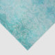 Diseño clásico de papel tisular con un elegante diseño barroco damasco sobre un fondo turquesa angustiado.