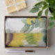 Hermoso ilustracion acuático de eucaliptos verdes y girasoles dorados, perfecto para una celebración de cumpleaños de primavera, verano o otoño.
