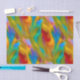 ¿Necesitas un diseño colorido lleno de azul vibrante, turquesa, verde, amarillo, rojo y rosa? Este patrón llamativo es un abstracto de vidrio artístico en forma de llamas.