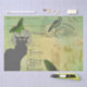 Collage de color verde bonito / oro / negro con mariposas, ephemera y silueta de gato del famoso poster de arte de Le Chat Noir, un local de entretenimiento del siglo XIX, en el bohemio distrito de Montmartre de París
