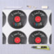 Este diseño presenta "Vintage" es una tipografía retro blanca y los números retro-stripe 1975 en colores divertidos y primarios, con un disco de vinilo en el fondo, y en una invitación redonda única.