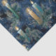 Overall Vibe: The image evokes a holiday or winter theme, feeling luxurious and sophisticated due to the deep colors and gold/silver accents. The combination of the deep blue, the glowing candles, and the winter greenery creates a warm, yet mystical, atmosphere.