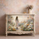 Transforme su mobiliario con este encantador papel de tejido descolorido que capta un viaje de jardín de ensueño. Una figura elegante, con un vestido blanco que fluye y un gorra vintage, se pasea a lo largo de un camino soleado, rodeado por una gloriosa profusión de flores de cabaña. La romántica paleta de blandas blancas, rosa coral y verduras nigradas crea unas impresionantes piezas de exposición perfectas para los armoscos, las mesas laterales y las pantallas decorativas. Ideal para la campiña francesa, el núcleo de la cabaña y los románticos estilos vintage. Nuestro papel de tejidos premium preserva cada detalle etéreo desde la falda ondulante hasta las flores silvestres bailarinas, llevando la magia de un jardín secreto a tus proyectos de restauración".