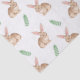 Destei’s watercolor pattern featuring a brown bunny with extra long ears and pink inside them is surrounded by green leaves and botanical foliage. The repeating design creates a woodland inspired look with natural tones and hand painted details. Perfect for spring and Easter, this nature inspired pattern adds a festive and seasonal touch to gift wrapping.