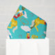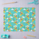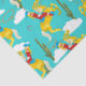 Añada un toque salvaje a los regalos con este papel de tejidos de temática occidental. Ilustraciones de coloridas vaqueras y caballos, cactus, herraduras, lassos y nubes se colocan sobre un fondo azul brillante.