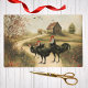 This farmhouse chic tissue paper features a farm and field scene with vintage botanical artwork of White Faced Black Spanish Bantam Roosters and Chicken. The poultry artwork is from a vintage illustration in the public domain, available via the Flickr Commons, and it's placed on a farm journal background with a barn and autumn trees. The White Faced Black Spanish Chicken —often called "Clown Faced Chickens"—are a rare heritage breed available from several major hatcheries and specialty breeders.