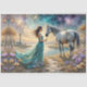 Papel De Seda Woman in blue gown on beach with horse,lighthouse.