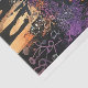Bruja con un vestido púrpura y negro con el pelo naranja. El follaje y las flores la adornan con gorra. Ella está parada en un jardín malvado.