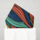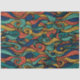 Es vibrante y llamativo, con un patrón paisajista colorido que da la impresión de estar tejido a partir de numerosas hilas de lana. La paleta de colores está compuesta por cuatro colores diferentes y vivos: amarillo, turquesa, azul oscuro y naranja. El uso del amarillo añade un elemento soleado y alegre al diseño, evocando sentimientos de calidez y felicidad. El turquesa, con sus propiedades frescas y tranquilizantes, contrasta maravillosamente con el amarillo, creando un efecto visual equilibrado y armonioso. El azul oscuro introduce profundidad y riqueza en el patrón, anclándolo y proporcionando una sensación de estabilidad. La adición de naranja es una elección audaz, infundiendo energía y vitalidad en el diseño. Sirve como un llamativo color de acento, llamando la atención sobre elementos específicos dentro del patrón paisley. En general, el diseño es una deliciosa combinación de colores y patrones, con un ambiente animado y lúdico, manteniendo al mismo tiempo una sensación de sofisticación y calidez. Es perfecto para añadir un toque de fantasía y creatividad a varios productos y ambientes, desde textiles y moda hasta decoración interior y obras de arte.