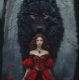 Papel De Seda Young Woman In Red Gown With Black Wolf Guardian