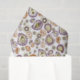 Zinnias y paisajes dibujados a mano y con un diseño esquemático y colorido en púrpura, naranja, amarillo y verde. Hechos divertidos: Los zinnias blancos son un símbolo de fidelidad, amarillos para la conmemoración. Según se informa, el patrón de Paisley tiene sus orígenes como símbolo zoroastriano de la vida y la eternidad y ha estado en uso continuo desde alrededor de 224 CE a 651 CE.