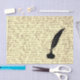 Papel de papel de regalo con imagen de escritura antigua y pluma de pluma y tinta.