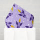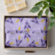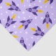 Un patrón de cohetes retro morados y estrellas blancas en un fondo malva.