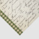 Collage con un hermoso rosa de ilustracion salvaje rosa con un fondo de escritura francesa manuscrita vintage y equilibrado con un brillante borde verde de verificación.