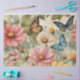 Un delicado y encantador diseño floral de inspiración victoriana, con flores de tonos pastel suaves. El diseño floral, muy cuidado, con sus sutiles realces, realza la elegancia de los ilustraciones botánicos pintados a mano. Entre las flores, las delicadas mariposas con las alas traslúcidas de encaje revolotean suavemente, lo que da una sensación de encanto romántico.