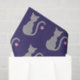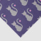 Un patrón de baldosas de gatos grises con estrellas rosas sobre morado.